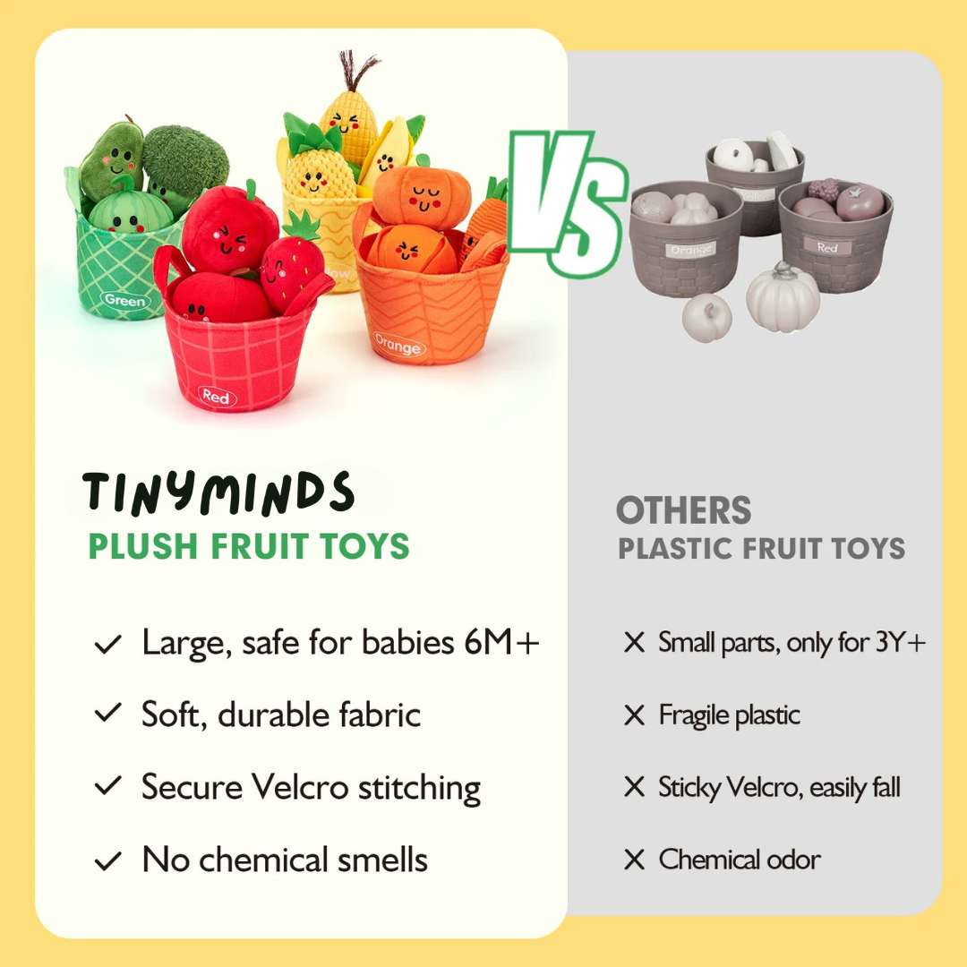 The TinyMinds™ My First Fruits & Veggies Set helps little ones develop imagination, patience, and self-guided focus through calm, cozy play moments they create on their own — no screens, no overstimulation, just meaningful discovery.